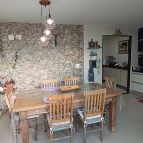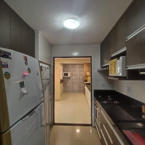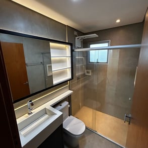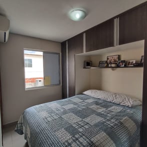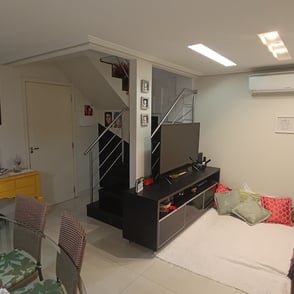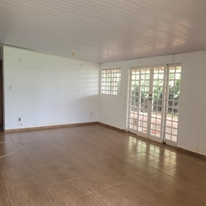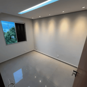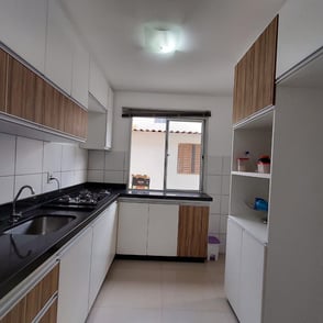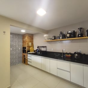 Casa com 3 quartos, garagem coberta, cozinha ampliada, projeto de iluminação, ar condicionado.