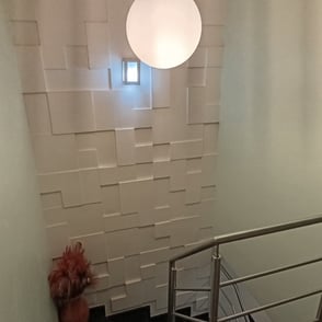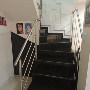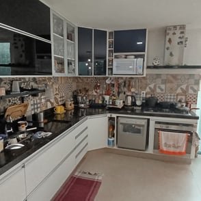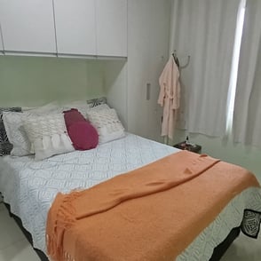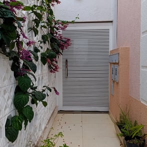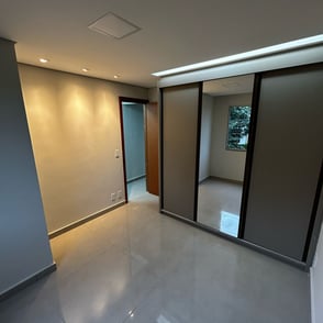 Casa com armários planejados, próximos da portaria, perpendicular.