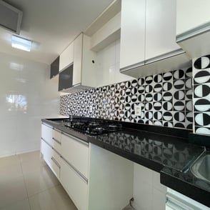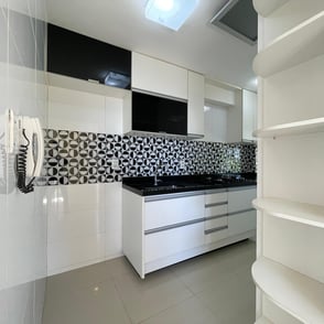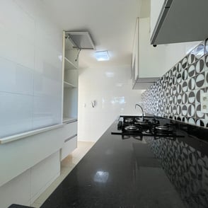 Com armários nos quartos, cozinha, cooktop, varanda fechada.