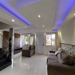 Casa com 3 quartos, garagem coberta, cozinha ampliada, projetos de iluminação, ar condicionado.